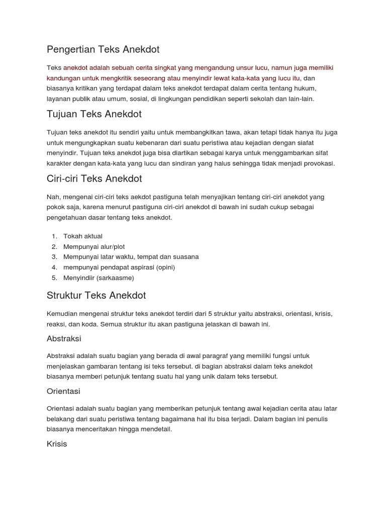 Struktur Teks Anekdot Dari Abstraksi Hingga Koda Kelas Pintar from www.kelaspintar.id We did not find results for: Check spelling or type a new query. Maybe you would like to learn more about one of these? Pengertian abstrak orientasi krisis reaksi koda.